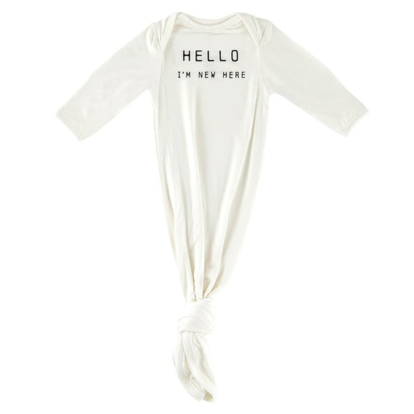 This knotted gown is perfect to gift or bring the newest addition home in. The easy access knot and stretchy fabric makes diaper changes a breeze.