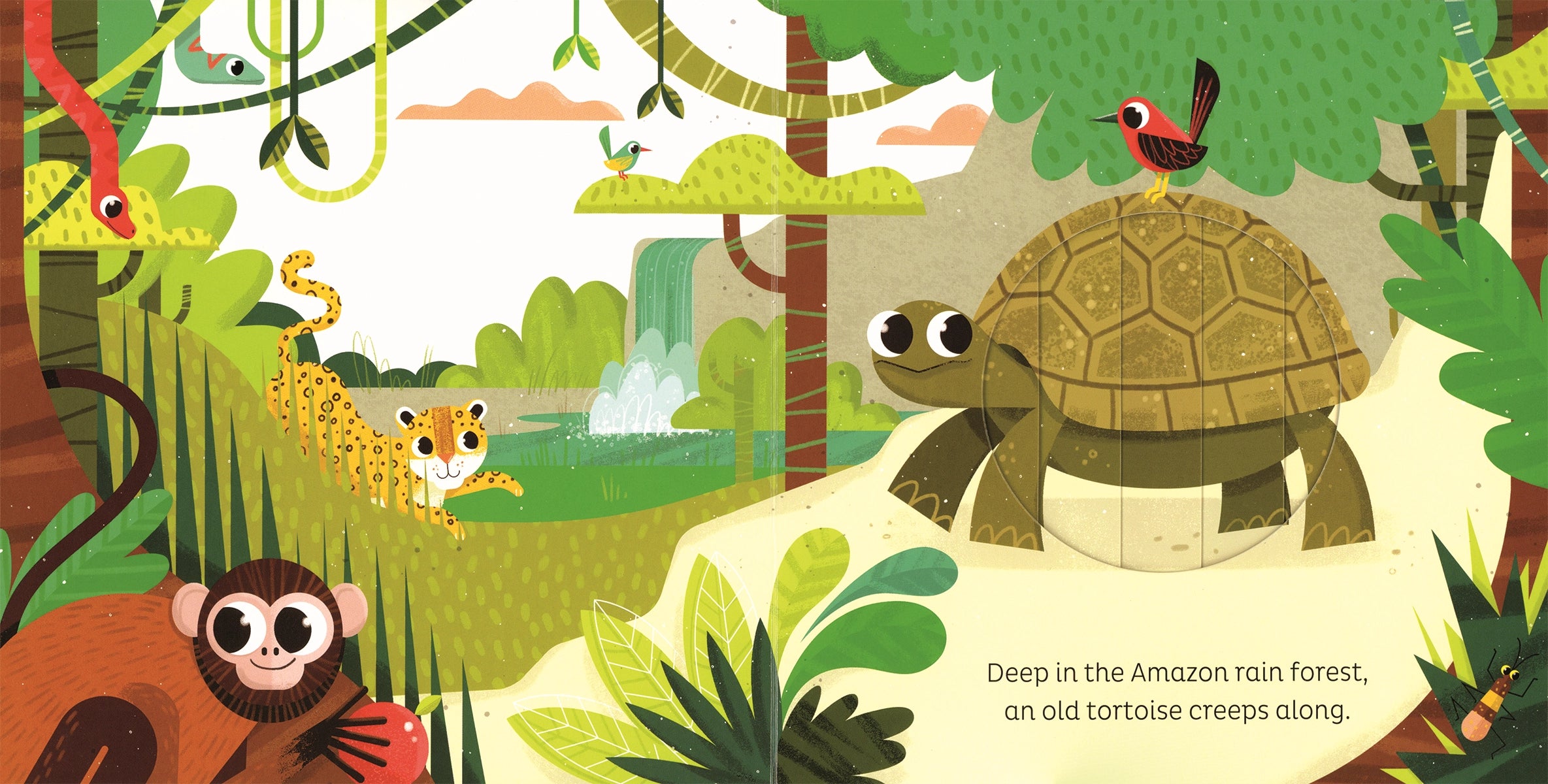 Watch extraordinary jungle animals including the colorful peacock spreading his feathers. Through the magic of Venetian window technology, appealing illustrations of some of Earth's amazing animals change with every page turn in this nature board book series, perfect for little hands.