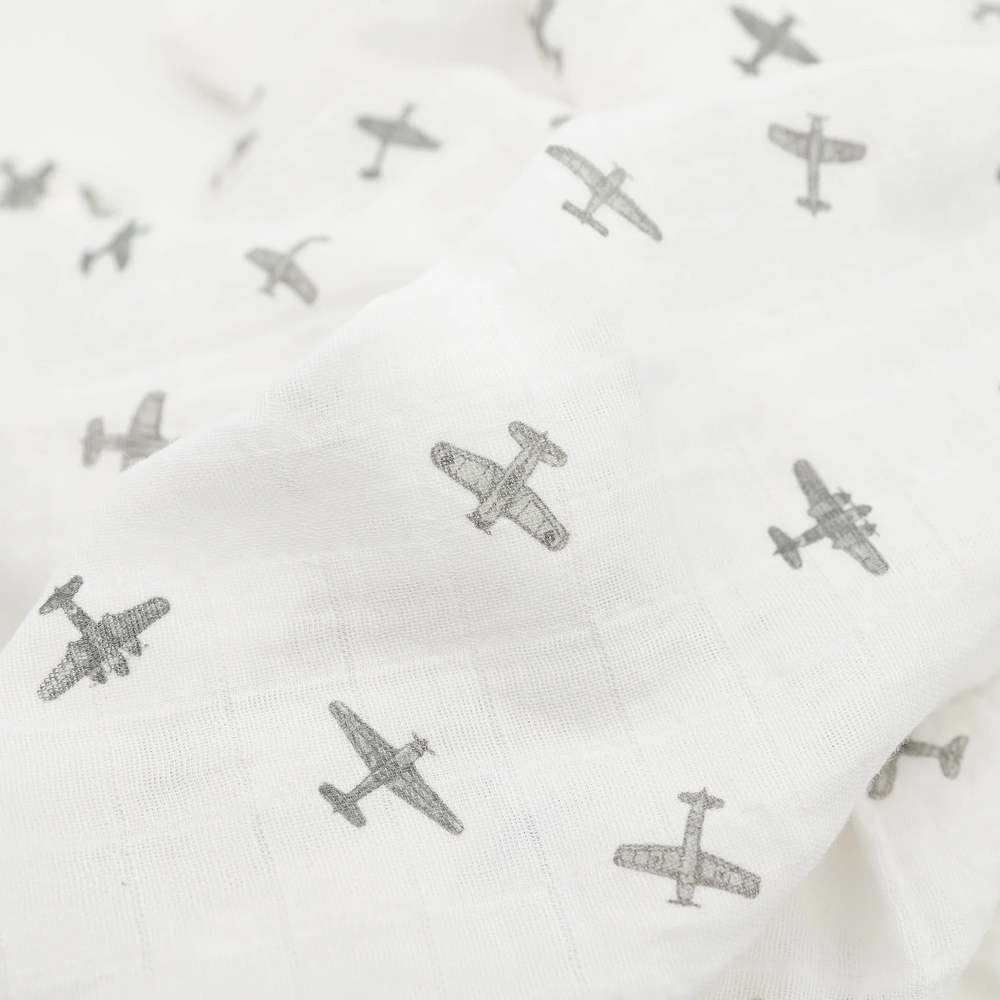 Pewter Planes Organic Cotton Muslin Swaddle