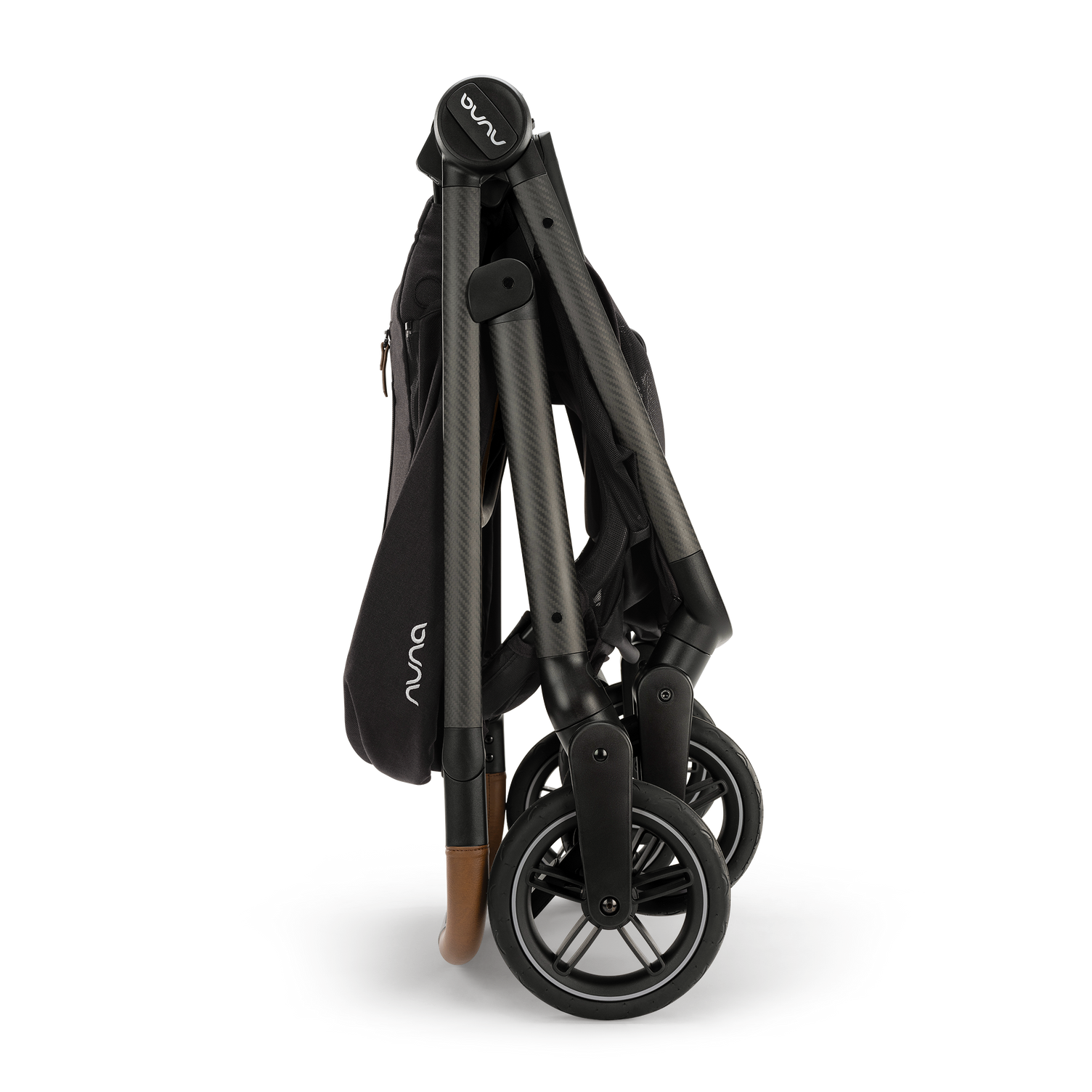 • Folding ring adapter with handle integrates into the stroller for a more compact 1-handed fold that stands on its own