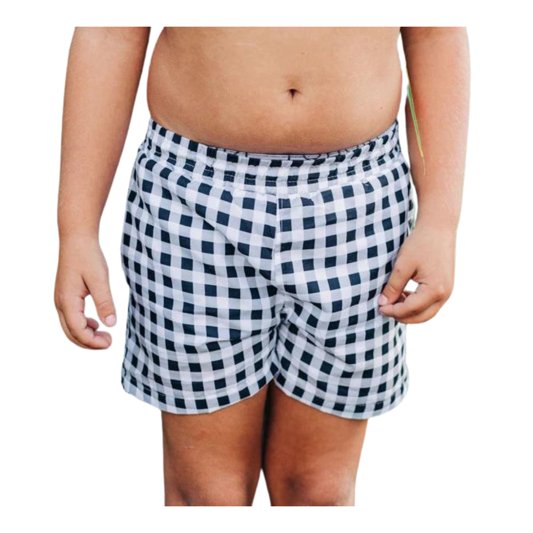 Black Gingham Swim Shorts