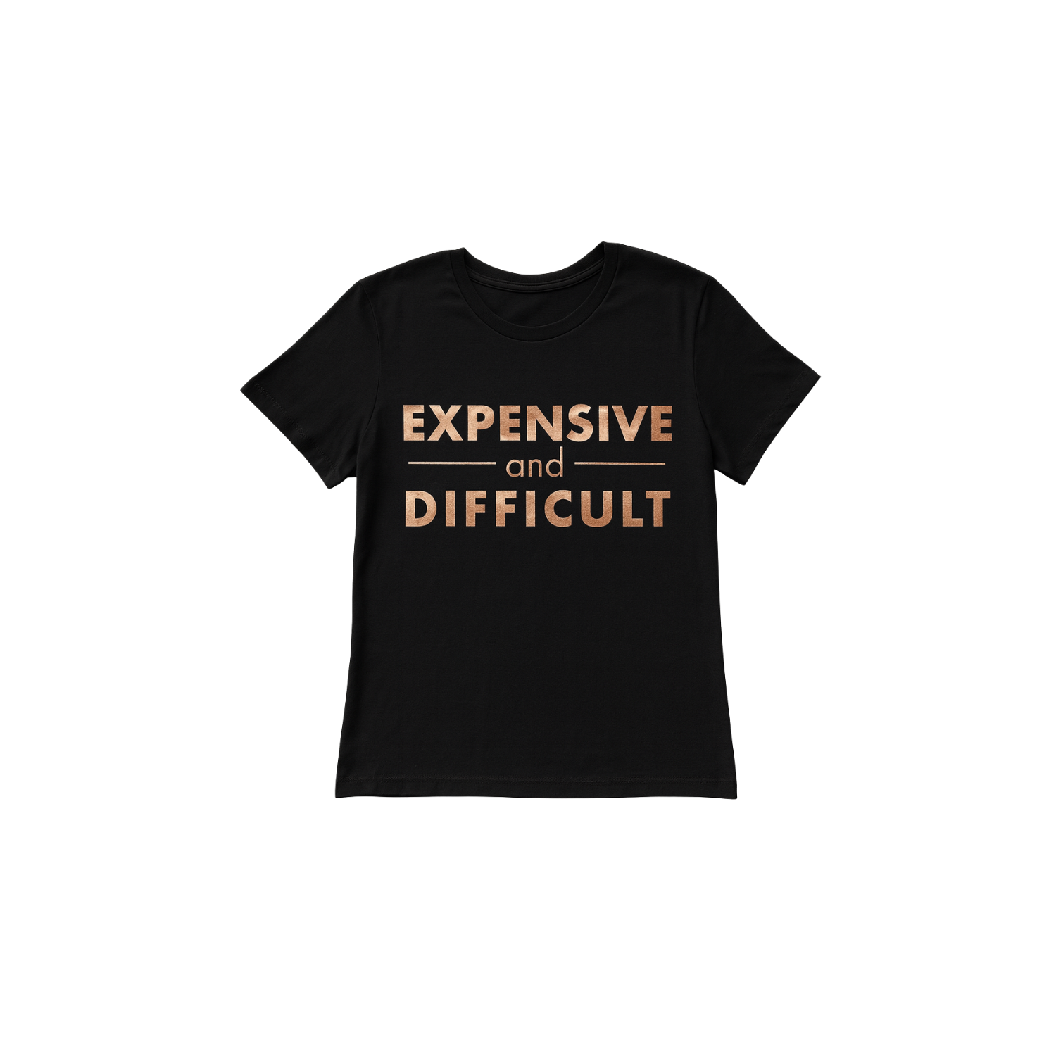 • Black tee with rose gold foiling