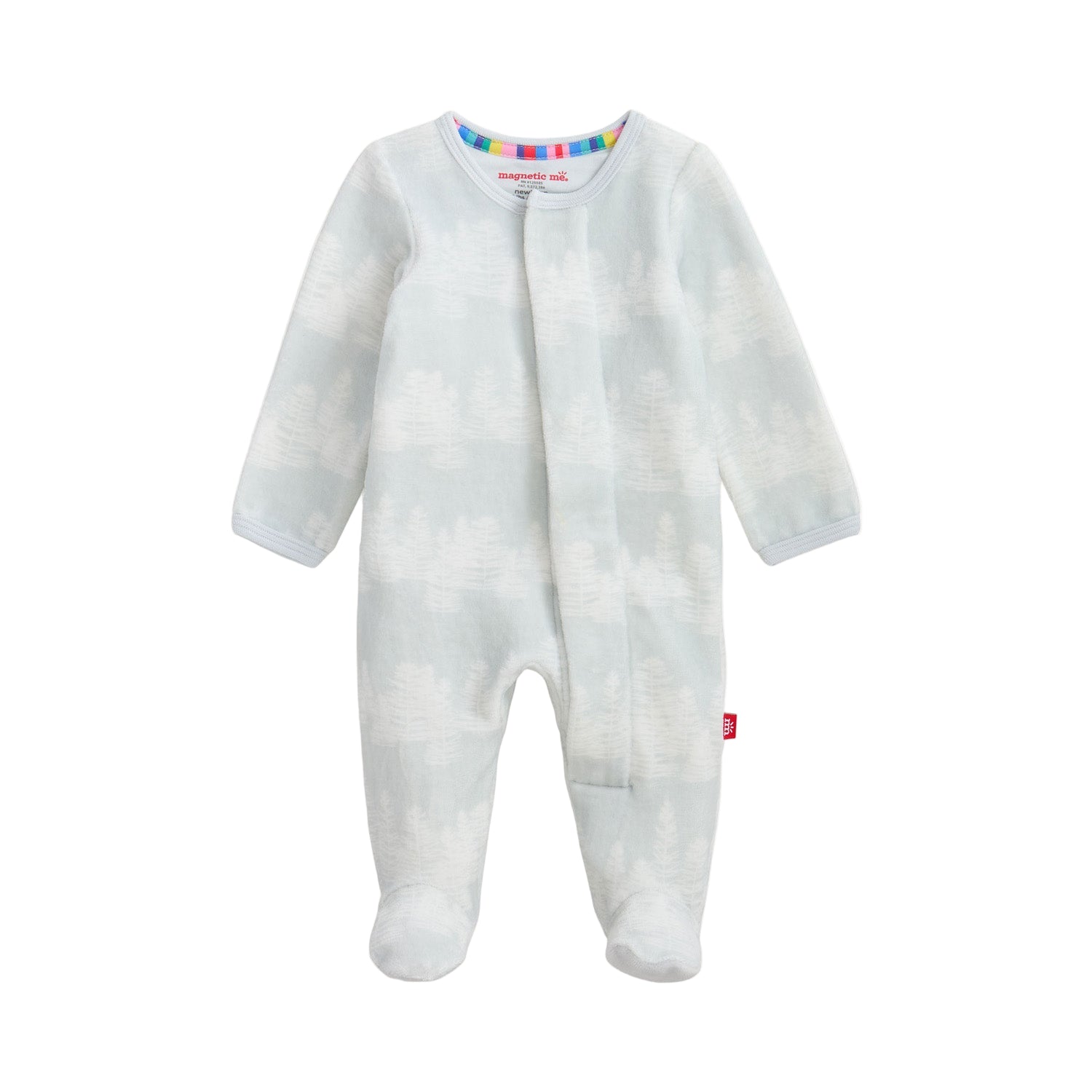 This velour footie, also known as a sleeper, gets baby warmed up and dressed quickly with magnetic closures down the front. It's the best outfit to wear when it gets chilly—soft, plush, and the perfect dose of cozy whether you’re at home or out and about.