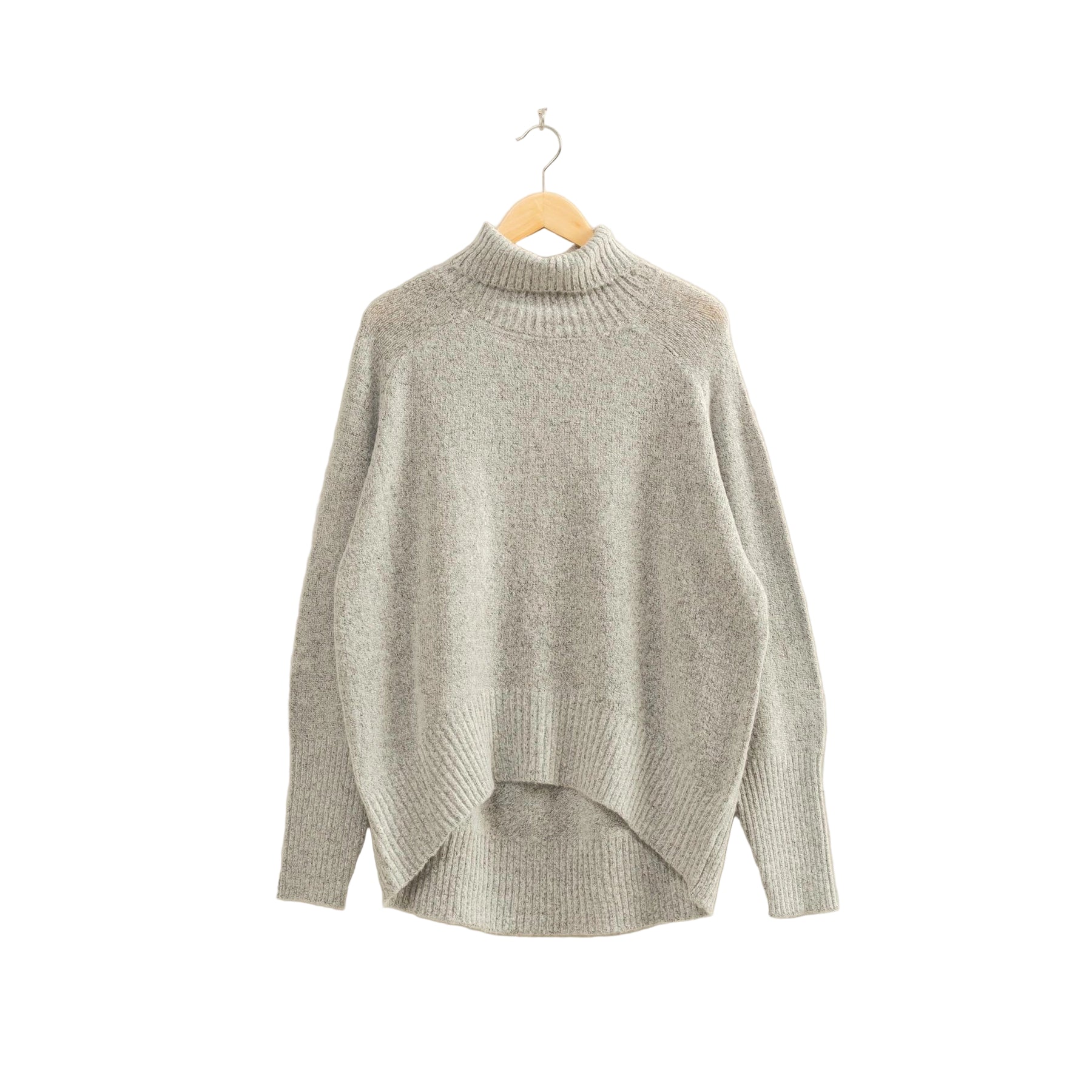 This oversized turtleneck sweater offers a relaxed silhouette perfect for stylish layering during cooler seasons. The voluminous sleeves add a touch of drama, enhancing both comfort and style. Ideal for pairing with sleek pants or layering over dresses, its versatile design ensures it fits seamlessly into both casual and chic events, making it a staple for any wardrobe. 76% Acrylic / 20% Polyester / 4% Spandex