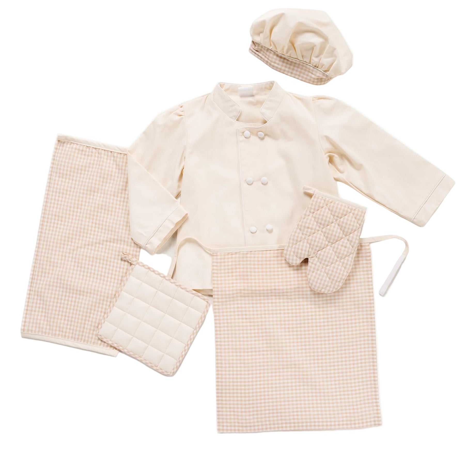 Set Include: Chef jacket, apron, chef hat, oven mitt, tea towel.