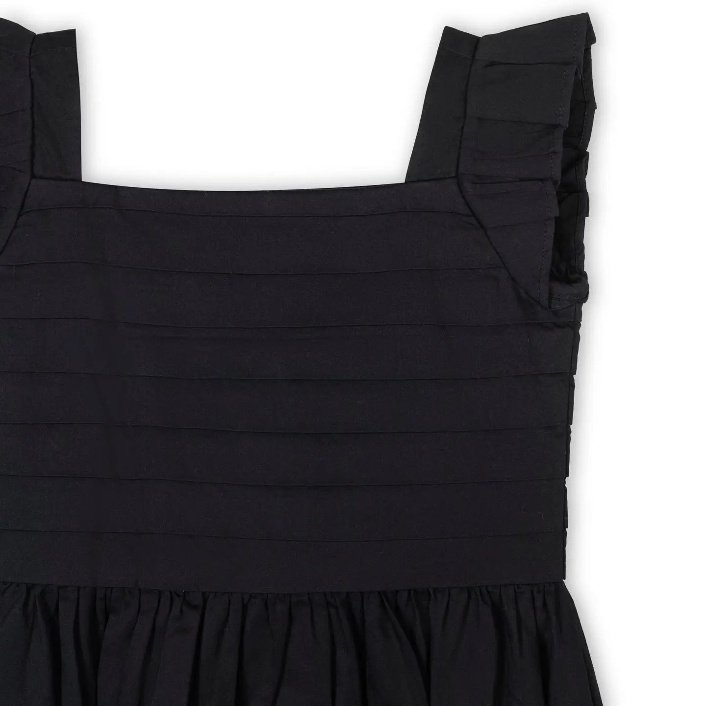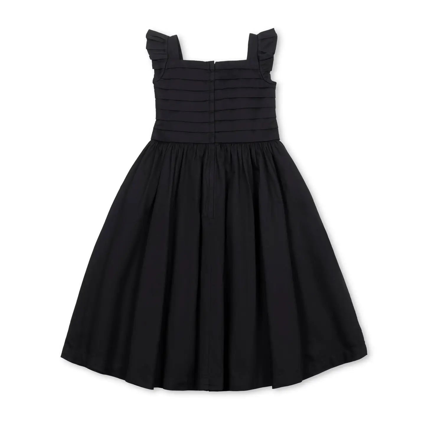 This stunning special occasion dress is crafted from soft organic cotton with incredible details that make it perfect for everything from dinner with the family to twirling on a dance floor. Features sweet ruffle sleeves and a ruched bodice. Fully lined in organic cotton with a zipper closure at the back.