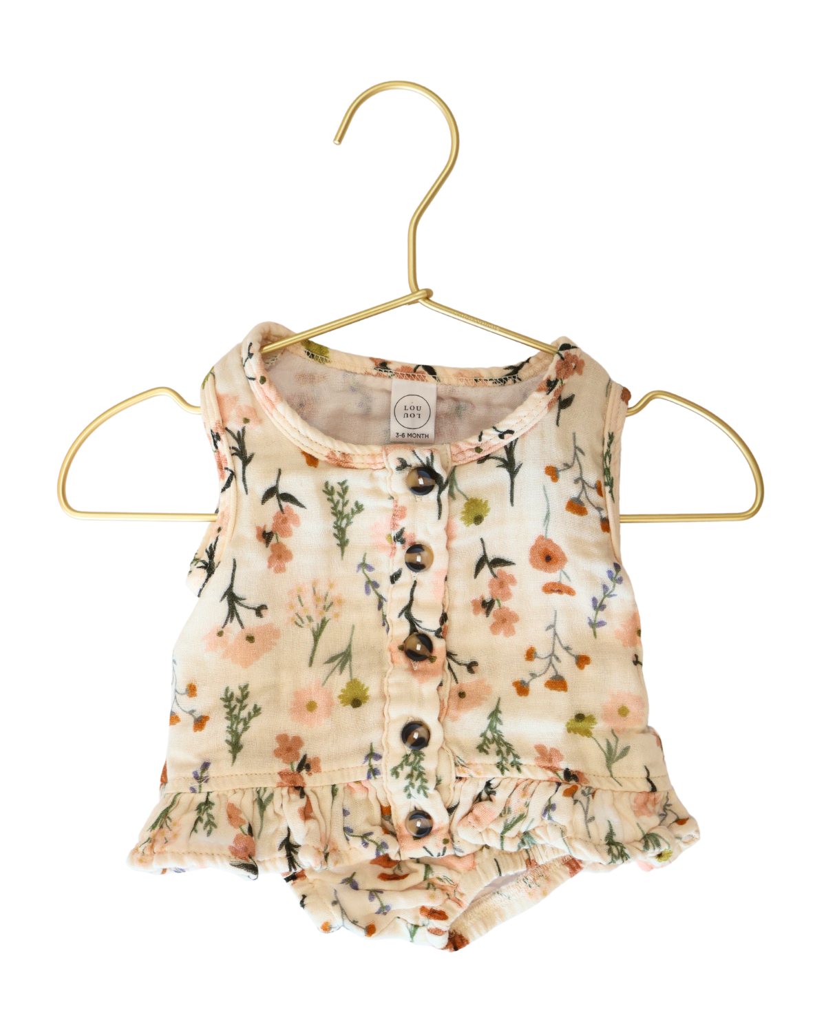 The Cloud Muslin™ ruffle tank + bloomer set is lightweight and breathable 100% cotton. Functional front buttons for quick changes and everyday ease.