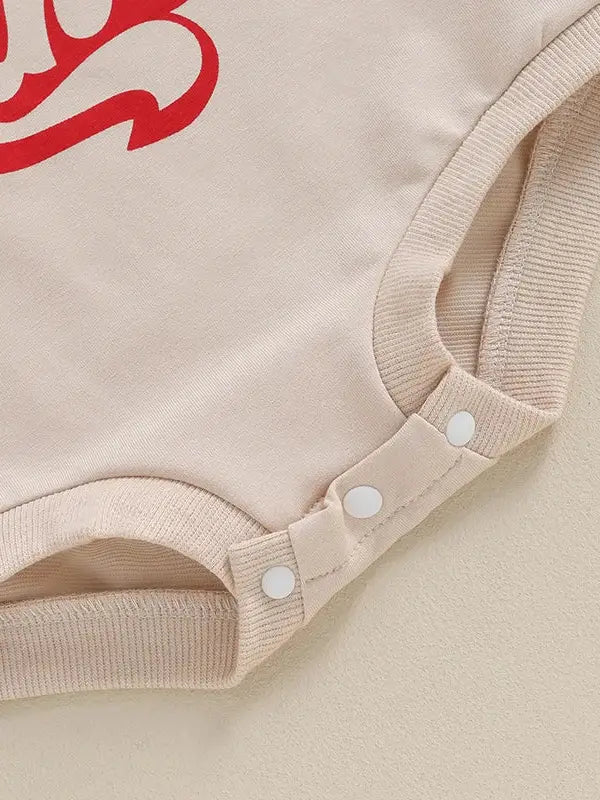 Be Mine Baby Hearts Valentine's Day romper. Cotton/Polyester blend.