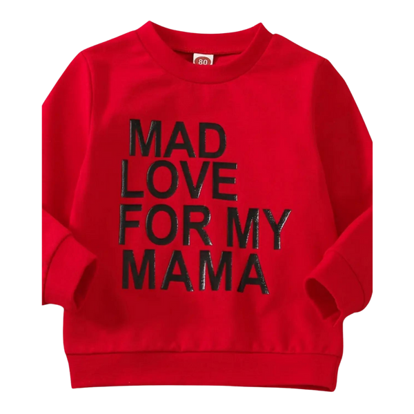 Mad Love For My Mama Valentine's sweatshirt. Cotton, polyester blend.