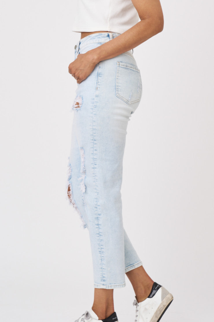 Stay stylish and chic in our high waisted stone wash jeans - perfect for hanging out all day with your mini!