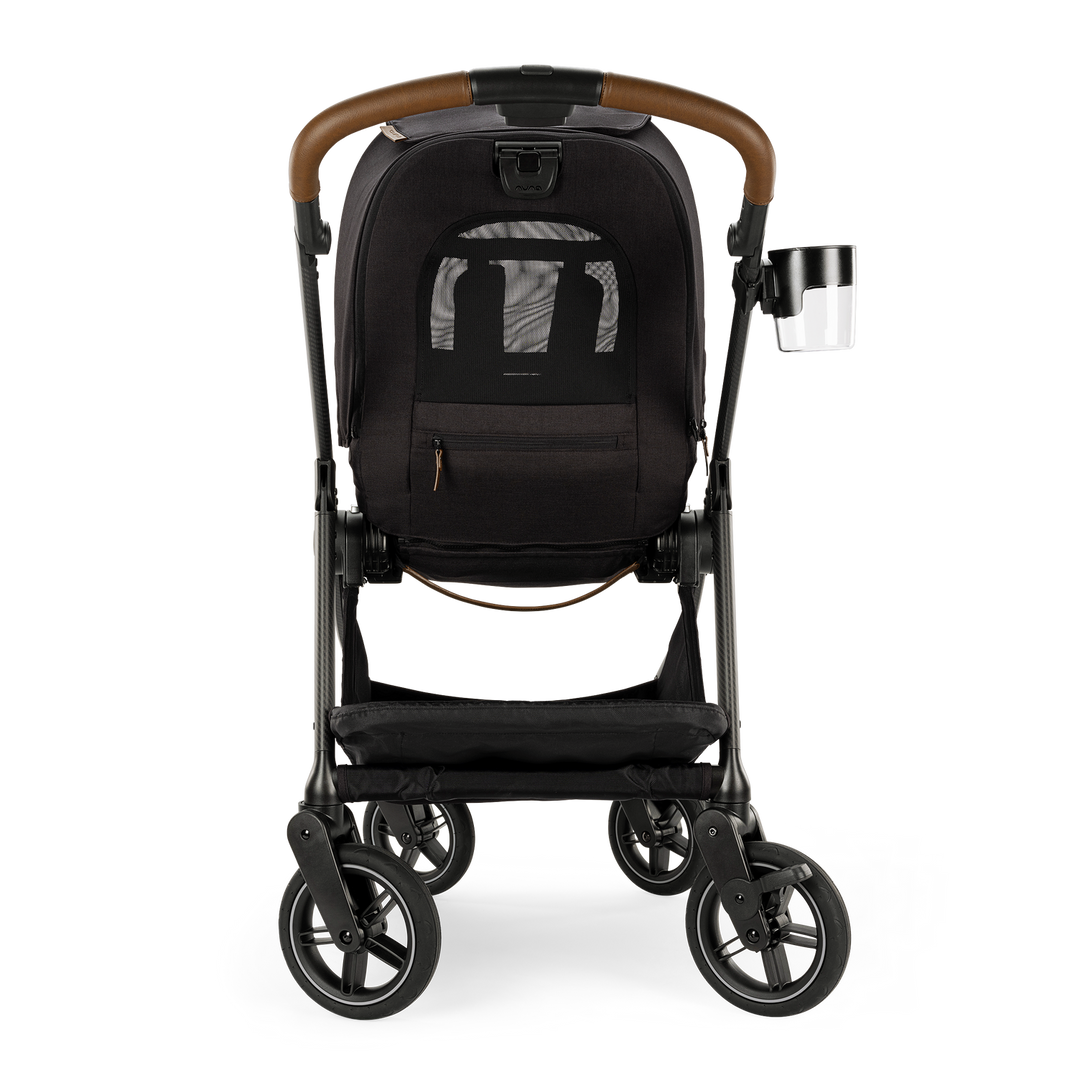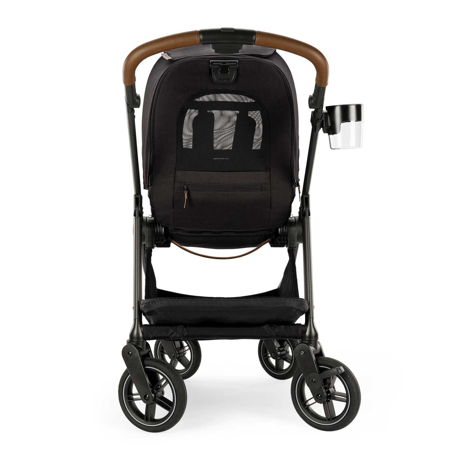 • Folding ring adapter with handle integrates into the stroller for a more compact 1-handed fold that stands on its own